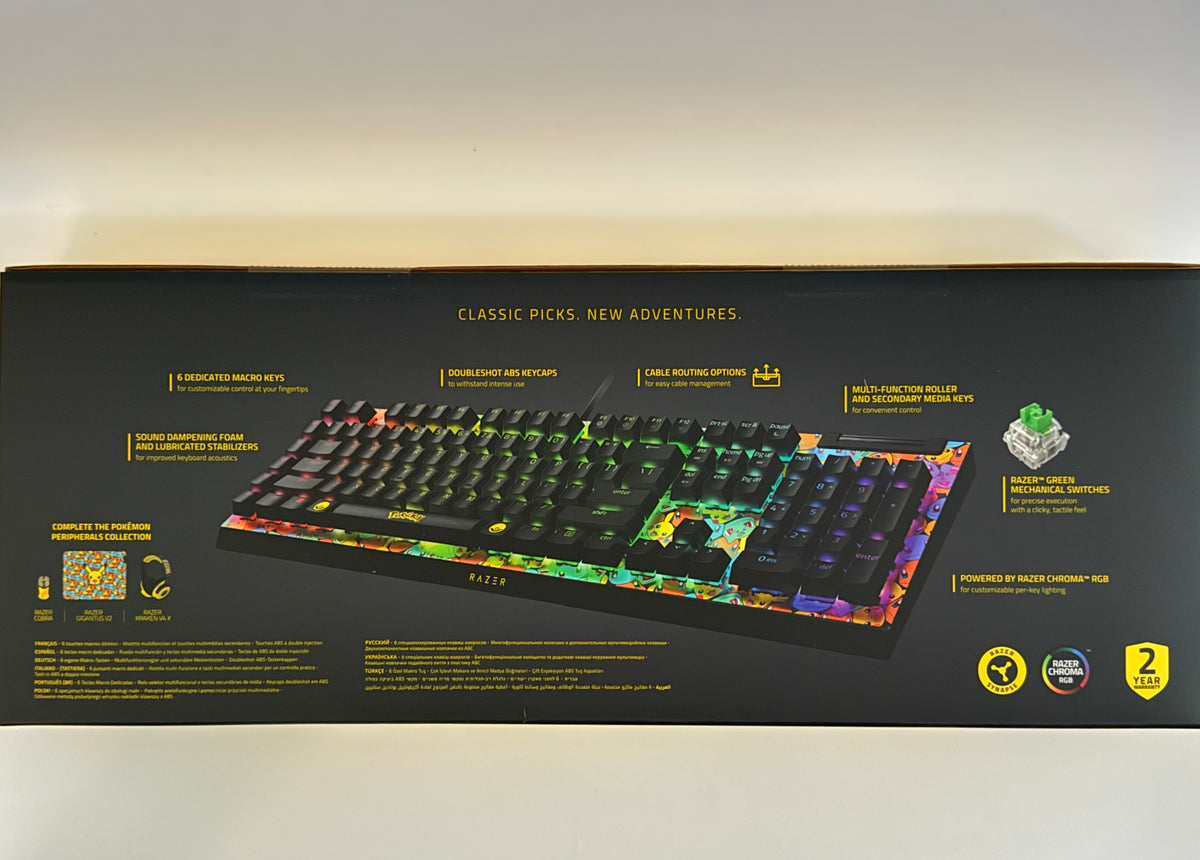 With a vibrant Pokémon-themed design, customizable RGB Chroma lighting, and dedicated media controls, it brings both functionality and fun to your desktop. Whether you’re training for battle or grinding through your favorite games, this keyboard offers precision, style, and immersive flair.